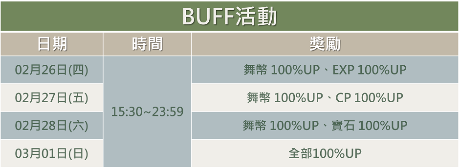二、週末BUFF活動