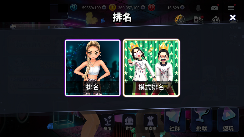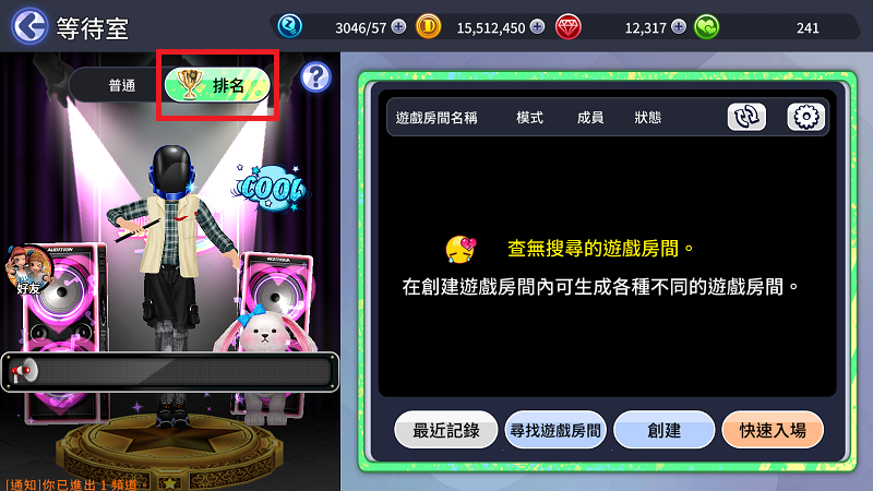 勁舞大廳左上角→排名。創建房間後右上角將出現額外獎盃圖示,有此圖示即表示為無BUFF排名模式房間。